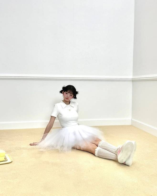 상의로는 미니멀한 흰색 카라 티셔츠를 선택해 과하지 않은 깔끔한 무드를 유지했다. 심플한 티셔츠와 화려한 메이크업, 그리고 풍성한 꽃다발이 조화를 이루며 레이 특유의 러블리한 분위기를 극대화했다. 네티즌들은 "진짜 인형 아니냐", "핑기니 너무 사랑스러워", "이 조합 미쳤다" 등의 댓글로 뜨거운 반응을 보였다.