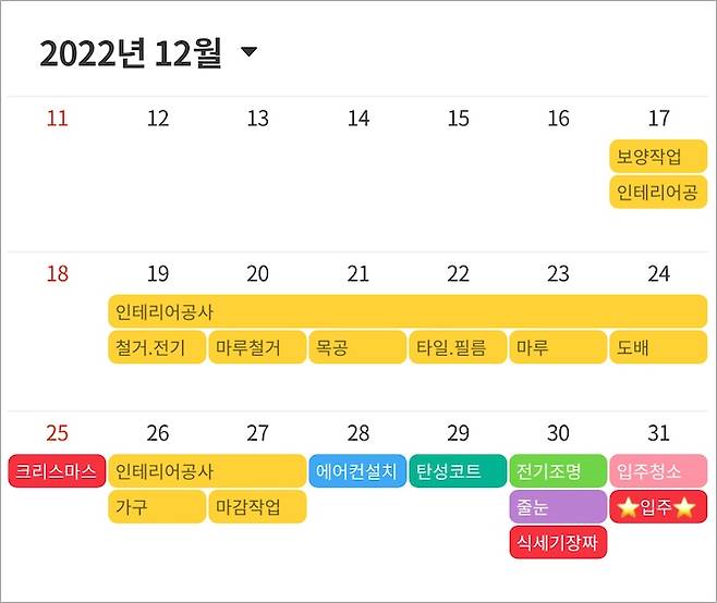 2주 동안 큼지막한 시공들을 무사히 끝마치고 2022년 12월 31일, 잊지 못할 마지막 날에 입주하였어요! 드디어 공간 하나하나씩 설명해 드리며 꾸며진 저희 집을 자세하게 보여드릴게요:D