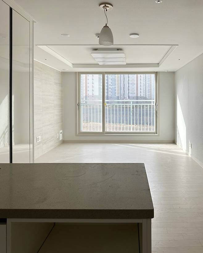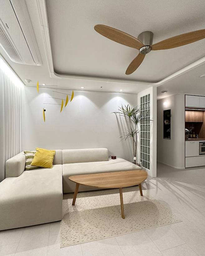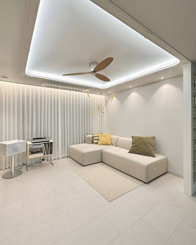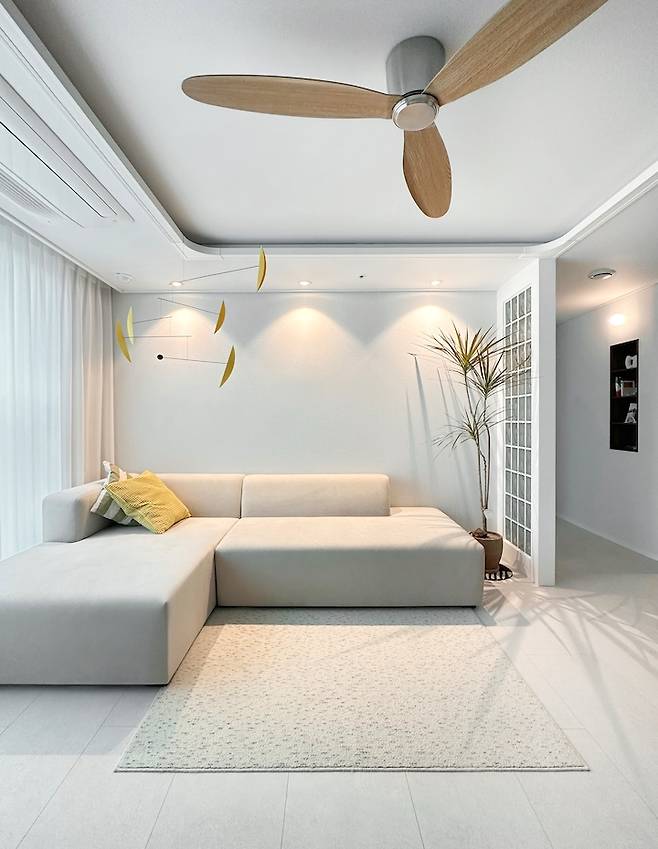 - 거실 : 유리블럭 가벽, 메인등 철거 및 우물천장 도배, 실링팬 설치