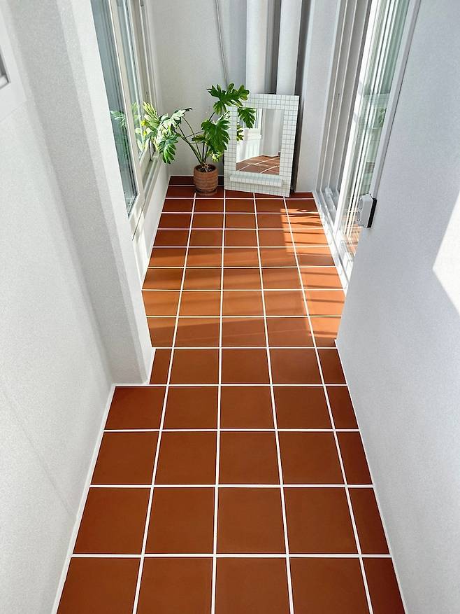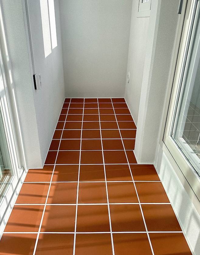 깨끗한 신축 베란다임에도 불구하고 뷰와 햇살이 아주 좋은 공간이라 타일 덧방까지 욕심 내보았습니다. 아직 추운 날씨에 베란다는 미완성인 채로 소개해 드렸지만 따뜻한 봄날, 꾸며진 모습으로 다시 소개해 드리도록 하겠습니다:)