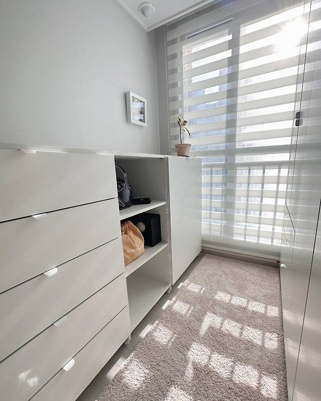 그리고 알파룸은 난방을 따로 사용하고 있지 않아서 다른 공간보다 서늘함이 있어 러그로 대체해 주었고요, 창문은 좀 더 사용하기 쉬운 콤비 블라인드로 설치해 주었답니다.