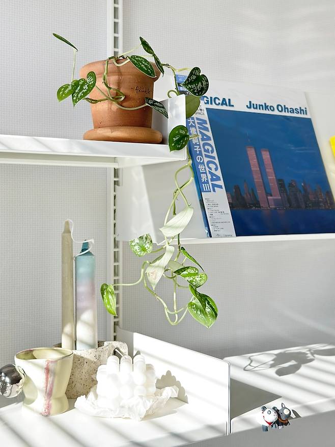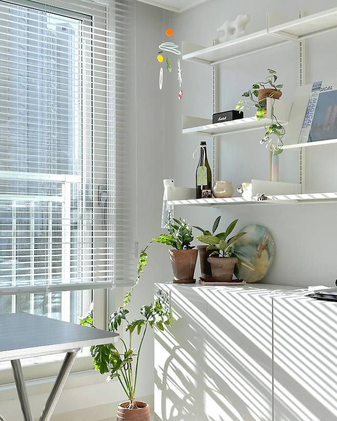 겨울 쯤 입주하여 소소하게 키우는 식물들을 해가 가장 잘 드는 실내에 위치해두었더니 플랜테리어가 되었네요:) 오래 전 원데이클래스에서 만든 작품도 이 곳에서 식물들과 잘 어우러져 다시금 애정이 쏟기 시작했어요.