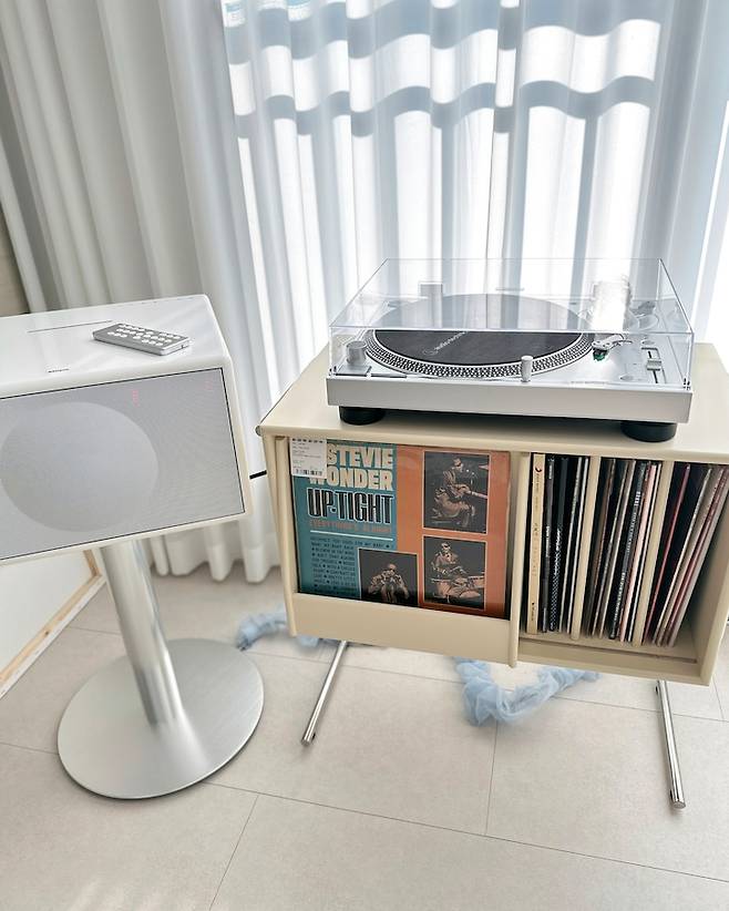 주로 거실에서 생활하는 남편이 LP를 모으고 감상하기 시작한 지 얼마 안 되었는데 그런 남편을 위해서 거실과 어울리면서 제 취향이 담긴 턴테이블장으로 골라보았어요. 남편이 좋아하는 취미활동을 보고 있으면 괜히 제 마음이 므흣-해져요:)