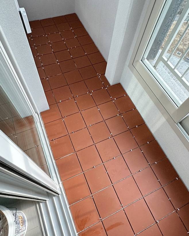 인터넷으로 필요한 자재를 최소한으로 구입한 후 우여곡절 끝에 베란다 덧방 시공을 완성하였어요. 자세히 보면 타일 간격이 삐뚤빼뚤하지만 저 혼자 셀프 시공한 것치고는 꽤 만족스러운 결과물이었습니다.