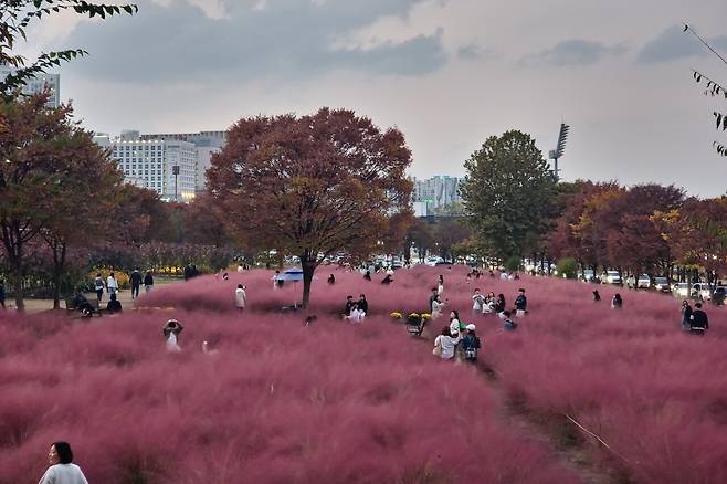 하늘공원에 오르는 길에는 가을을 대표하는 억새와 코스모스가 길게 펼쳐져 있어, 가는 길부터 가을의 향기가 물씬 느껴지는 게 특징인데요.