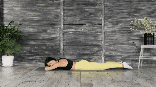 매트에 배를 대고 엎드린 상태에서 다리 사이에 볼이나 수건을 끼웁니다. 팔은 구부려 턱 밑에 두고, 다리를 공중으로 들어 올렸다가 내립니다. 이때 다리 사이에 지속적으로 힘을 주어 허벅지 안쪽을 단련합니다.