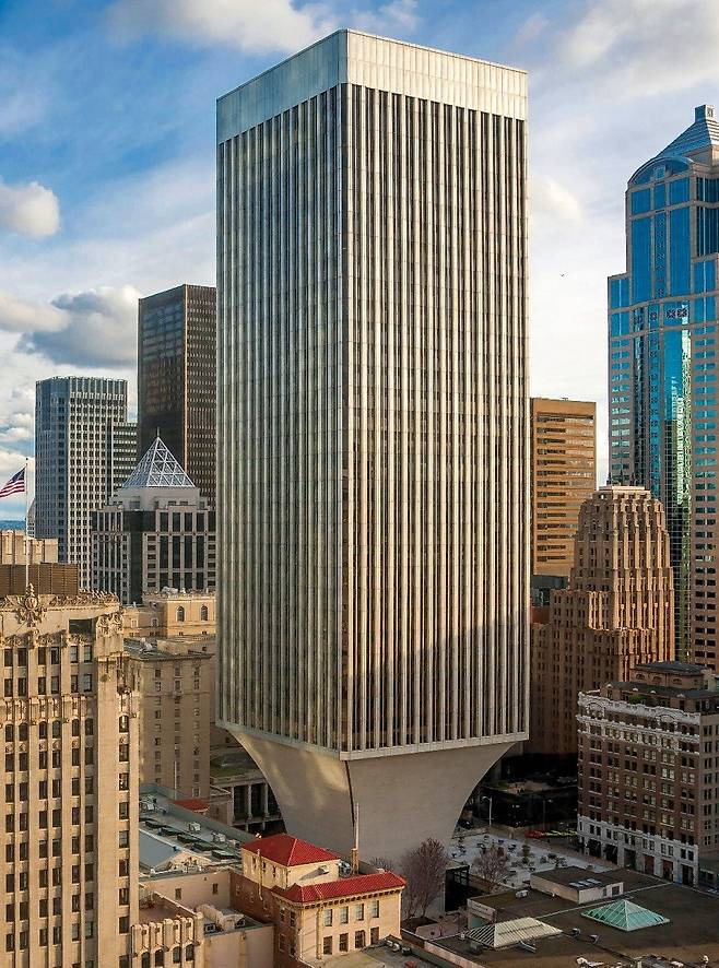 미국 시애틀의 레이니어 타워는 오랜 세월 도시와 시민, 전문가 사회 내 논쟁의 중심이었다. 이 타워는 하부가 역삼각형 모양으로 설계된 독특한 디자인으로, 도시 고밀도 환경 속 보행자의 공간을 최대한 확보하려는 의도에서 탄생했다. 일반적인 빌딩들과 달리 땅에 닿는 면적이 좁고, 상층부가 넓게 퍼지며 시각적·공간적으로 강렬한 인상을 남겨왔다.