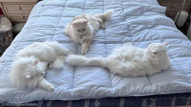 최근 반려묘 '코니', '루나', '미리' 가족의 보호자 키이스 킴(Keith Kim) 님은 사회관계망서비스(SNS)에 "새 이불 샀습니다. 그리고 첫 사용자"라는 글과 함께 한 장의 사진을 게시했다.