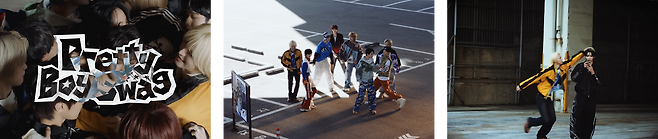 ‘Pretty Boy Swag’ 뮤직비디오는 서로 팽팽하게 대립하는 듯한 두 유닛으로 시작되는데요. 영상의 초반부는 이번에 새롭게 베일을 벗은 유닛 yesweare 멤버들이 화면을 가득 채우며 분위기를 주도합니다. 이어지는 장면에서 멤버 청명이 이전 유닛인 unevermet 멤버 재영의 모자를 낚아채 빠르게 달려 나가는 모습은 아직 완전히 섞이지 않은 유닛 간의 거리감과 미묘한 긴장을 장난스러운 연출로 가볍게 드러내는 것만 같습니다.💥
