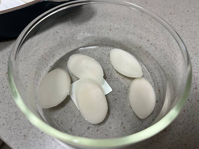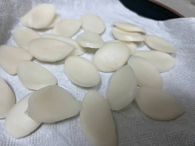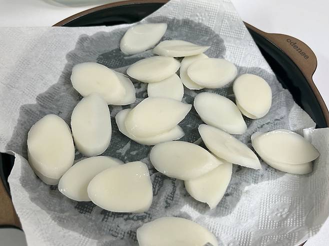 기존에 물에 담가뒀던 떡국떡은 건져서 이틀 동안 수분을 말려 줍니다. 물기가 많다면 키친타월을 깔고 말려 주세요.