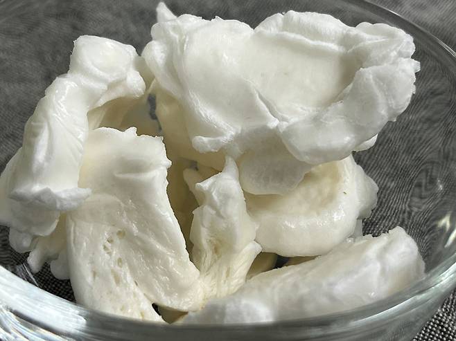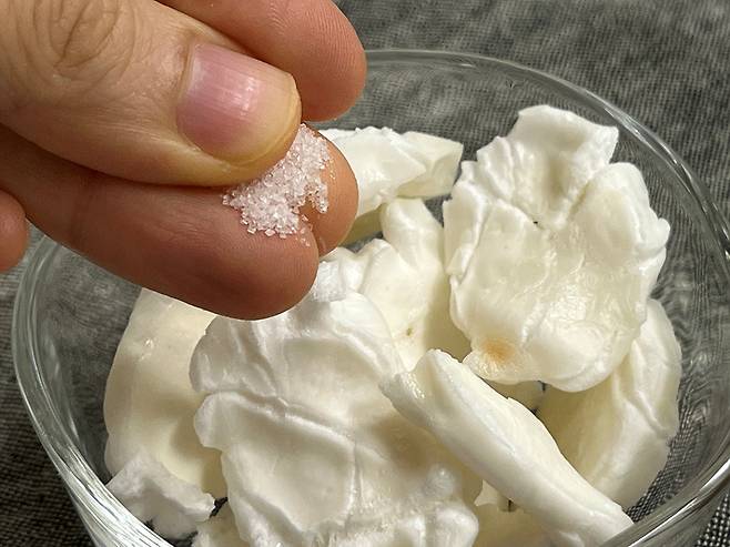 바삭한 식감이 떡뻥과 꽤 비슷합니다. 만일 떡뻥 자체가 너무 딱딱하다면 건조가 제대로 안 된 것입니다. 이때는 다칠 위험이 있으니 무심코 드시지는 마세요.
