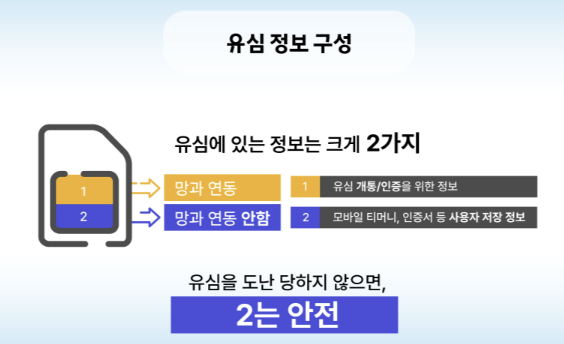 설령 해커가 불법 복제 유심으로 심 스와핑에 성공했다고 해도 금융자산을 탈취할 순 없다. 유심 정보에는 주민등록번호와 계좌번호, 은행 OTP 등의 정보는 담겨있지 않기 때문이다. 유심에는 가입자를 식별하고 인증하기 위한 정보와 가입자가 직접 저장한 정보가 포함된다. 가입자 식별정보는 국제 이동통신 가입자 식별변호(IMSI)와 가입자 인증키(Ki) 등 유심을 개통하거나 인증할 때 필요한 데이터다. 가입자가 직접 저장하는 정보는 모바일 티머니나 인증서 등으로 이 정보는 통신망과 연동되지 않는다. 따라서 가입자가 직접 저장한 정보는 이번 유출 사고와 관련이 없다.