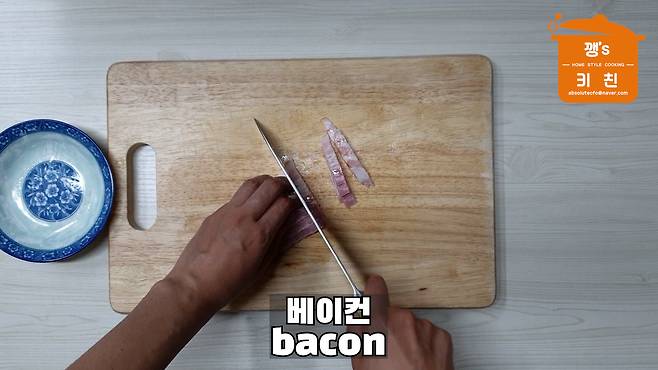 베이컨을 가늘게 썰어 주세요