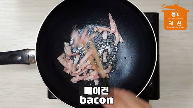 베이컨을 넣고 볶아주세요