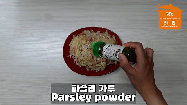 접시에 담고 파슬리도