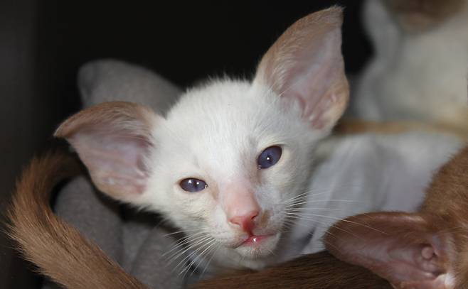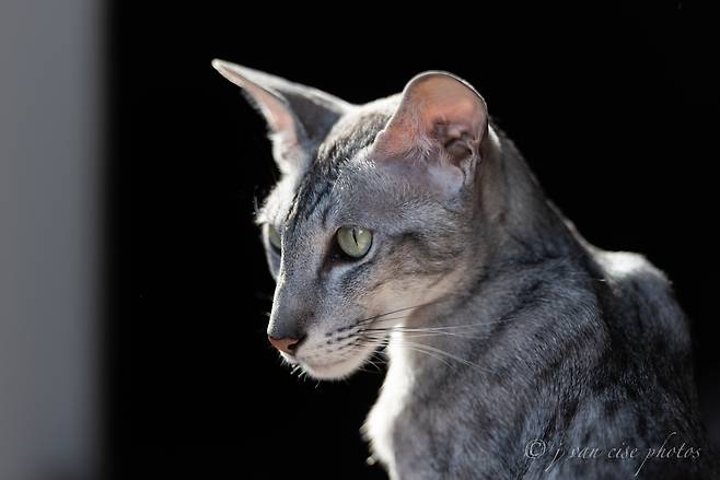 오리엔탈 숏헤어는 일반 고양이와 다르게 귀가 크고, 주둥이가 긴 편이에요. 얼굴이 작은데다, 볼살이 없고 날렵해서 귀가 더 커 보입니다.