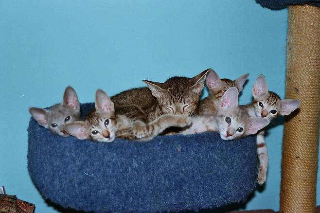 1970년대 미국에 오리엔탈 숏헤어 고양이가 알려졌어요. 이때, 비키 마크스타인(Vicky Markstein)과 피터 마크스타인(Peter Markstein)은 스라소니처럼 보이는 오리엔탈 숏헤어의 털색과 무늬에 반했다고 합니다.