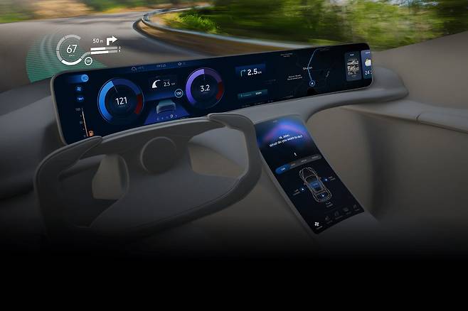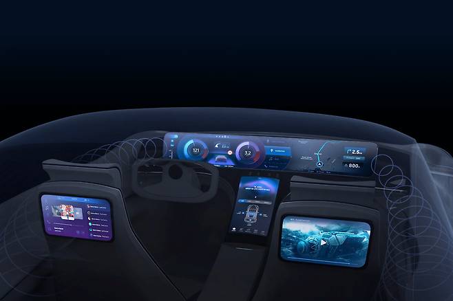 인터페이스는 ‘쿨워크(Coolwalk)’ 기반으로 설계된 것으로 보인다. 화면 좌측에 고정된 사이드바와 다중 분할 패널을 활용해 내비게이션, 전화, 음악 등 주요 앱을 동시에 표시하는 방식이다.