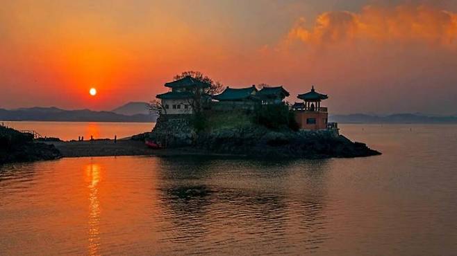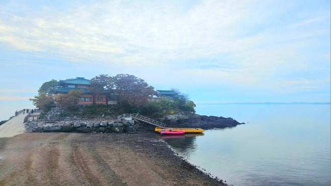 물이 차오르는 만조 때는 마치 암자가 바다 위에 둥둥 떠 있는 듯한 신비로운 풍경을 연출하여 ‘물 위의 연꽃’이라고 불려요.