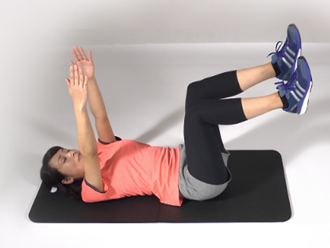 데드버그는 빠르게 하기보다 바닥에 누워 허리와 바닥 사이에 손가락 하나 들어가지 않도록 배를 꽉 누른 채 교차하는 팔과 다리를 아주 천천히 내렸다가 올리는 것이 핵심입니다.