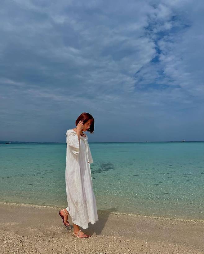 청명한 하늘과 에메랄드빛 바다가 맞닿은 어느 해변, 조윤희가 올린 한 장의 인스타그램 사진이 시선을 사로잡았다. 바닷가를 걷는 그녀의 모습은 마치 한 폭의 그림 같았고, 그 중심에는 내추럴하면서도 청순한 매력이 가득한 화이트 롱드레스가 있었다.