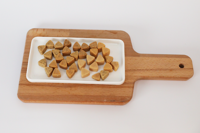 말랑 쫀득한 질감으로 치아, 잇몸에 부담 없이 급여할 수 있다는 게 장점이에요. 그래서 어린 강아지나 노령견도 쉽게 먹을 수 있답니다. 또한, 손으로도 쉽게 조각낼 수 있어 트릿 하나로 여러 번 급여가 가능합니다.