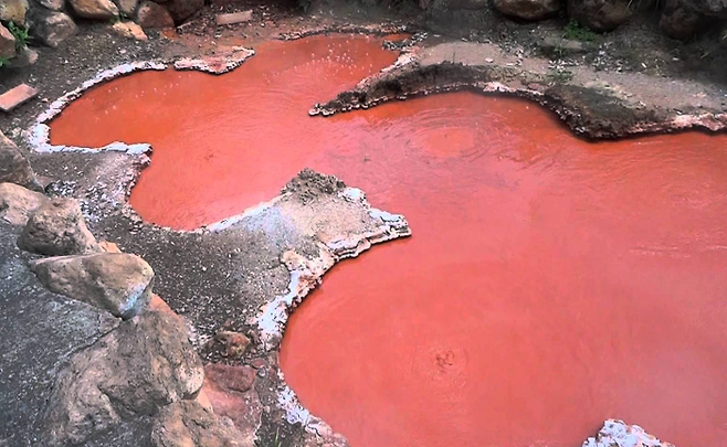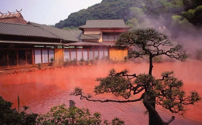 그중 '피의연못 지옥'은 1300년 전부터 존재한곳으로 온천색이 피로 물든것처럼 빨간색인데, 그 이유는 지하의 고온과 고압으로 자연스럽게 화학반응을 일으켜 생긴 산화 등을 함유한 점토가 연못을 붉게 물들였기 때문입니다.