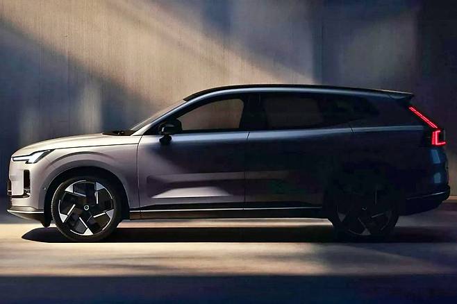 차체 디자인은 최신 볼보 SUV의 패밀리 룩을 충실히 따르고 있다. 전면부는 토르의 망치형 LED 주간주행등과 매트릭스 헤드램프가 조화를 이루며 닫힌 그릴은 공기역학 성능 개선과 전기차 이미지 강화를 동시에 노렸다. 후면은 더 날렵해진 C필러와 통합형 C자형 테일램프가 적용돼 XC90보다 작지만 더 민첩한 인상을 남긴다. AWD 배지도 추가되어 전륜과 후륜 동력 배분이 가능한 사륜구동 시스템을 탑재했음을 암시한다.