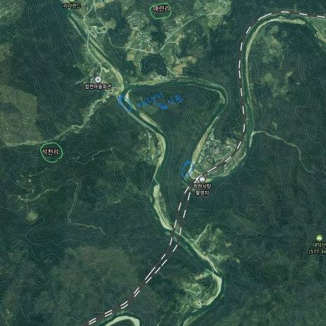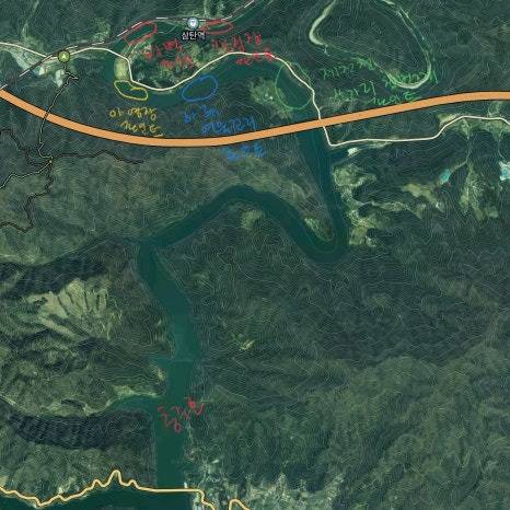 산 아래쪽이 수심이 깊은 물골 지역이지만