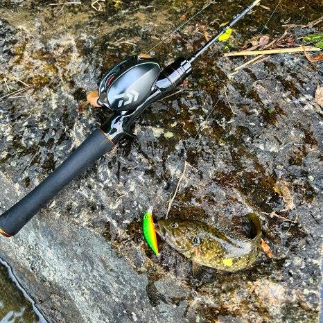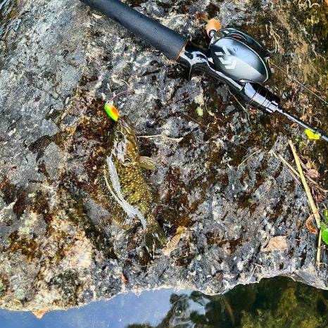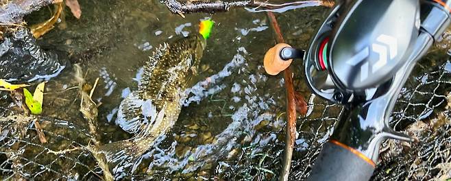 중간 물골 지역에서 꺽지를 낚은 와이프의 모습