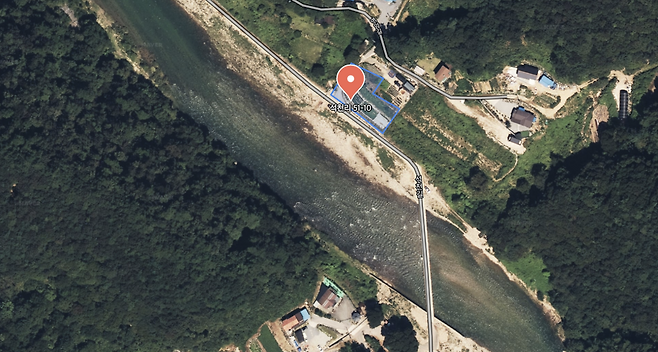 석천리 포인트의 여울과 여울 구간의 모습(네이버 지도)