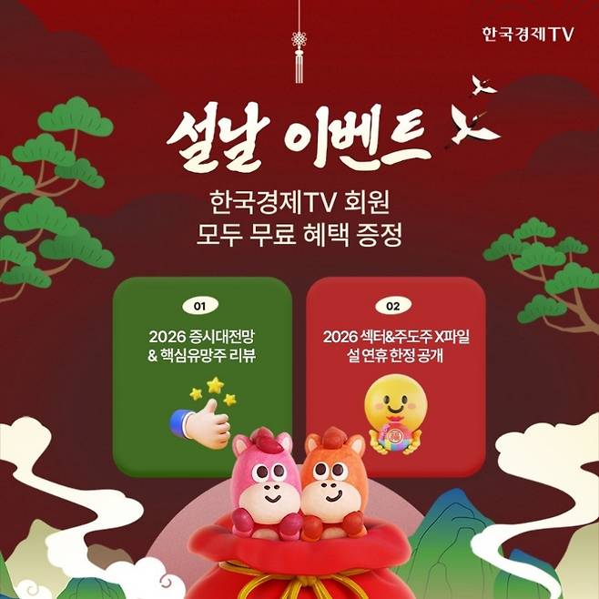 한국경제TV 와우넷 관계자는 "설 연휴는 한 해의 투자 방향을 정리하고 준비하기에 가장 좋은 시기"라며 "이번 이벤트를 통해 회원들이 설 이후 시장을 보다 자신감 있게 맞이할 수 있기를 기대한다"고 밝혔다.