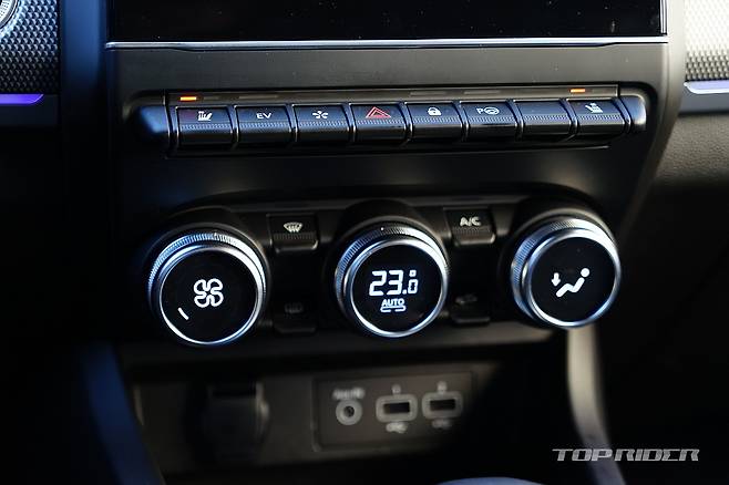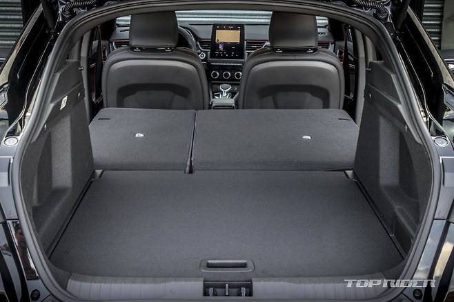 XM3 E-TECH의 실내공간은 레그룸과 헤드룸에서 여유를 보인다. 과거 중형 SUV에 가까운 휠베이스로 인해 레그룸과 트렁크 공간(487리터)이 넓은 편이다. 반면 전폭 대비 실내폭이 다소 좁게 느껴지기도 한다. 1열 시트 높이는 엉덩이를 밀어 넣을 수 있는 절묘한 위치다.