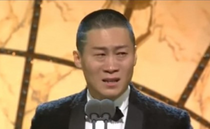 수상 소감 무대에서 그는 눈물을 흘리며