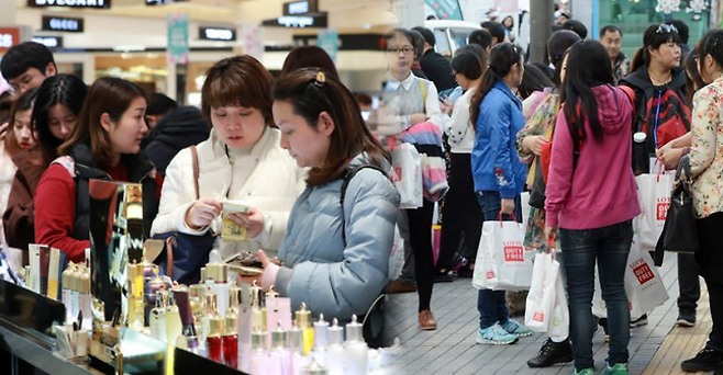 특히 올해에도 중국인 관광객의 쇼핑 지출액이 미국, 일본을 앞지른 것으로 나타났습니다. 중국 관광객들은 한국산 고가 화장품, 향수를 사는데 지출핵의 76% 가량을 쓴 것으로 조사됐는데요.
