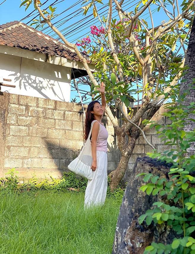 허가윤의 인스타그램 속 햇살 가득한 정원 풍경이 눈길을 끈다. 'Hari santai(느긋한 하루)'라는 멘트와 함께 공개된 이번 사진에서는 여름 햇빛 아래 그늘과 빛의 대비를 감각적으로 담아냈다. 그녀는 내추럴한 톤의 린넨 팬츠와 슬리브리스 탑을 매치하며, 여유로운 무드를 스타일로 표현했다.