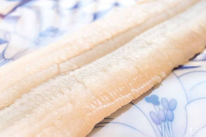 다른 업체는 회 양은 2~3배 많은 대신 야채 없이 초장만 들어 있고 가격은 2만 9천 원이다. 같은 장어라도 구성과 손질 스타일, 가격에서 차이가 크다. 지역 차이도 있다. 전라도 쪽에서는 뼈째 썰어 콩가루에 묻혀 먹는 방식이 일반적이고, 경상도 기장 지역은 회를 눈꽃처럼 얇게 썰어 콩가루에 버무려 먹는다.