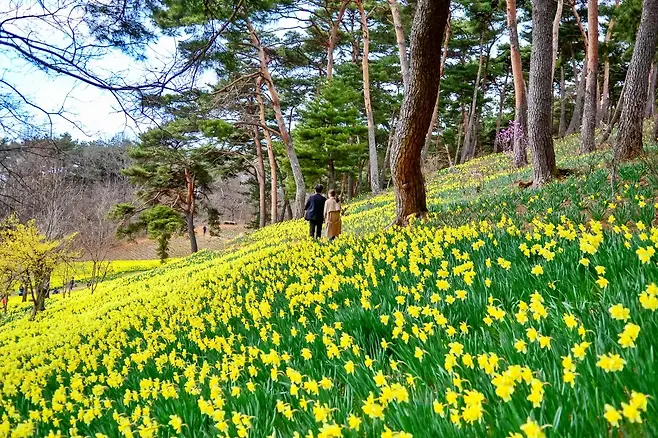 예산군에 위치한 추사 김정희 선생의 고택은 대중적으로 덜 알려진 숨은 명소다. 정원 곳곳에 수선화가 피어 있으며, 매화, 목련, 진달래, 철쭉이 함께 어우러진 봄 풍경이 눈길을 끈다. 군락의 규모는 크지 않지만, 자연스레 펼쳐진 꽃밭과 조용한 분위기가 매력이다.