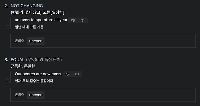 even의 여러 뜻 중 고른, 균등한의 의미를 가진 이븐! 이 활용된다.