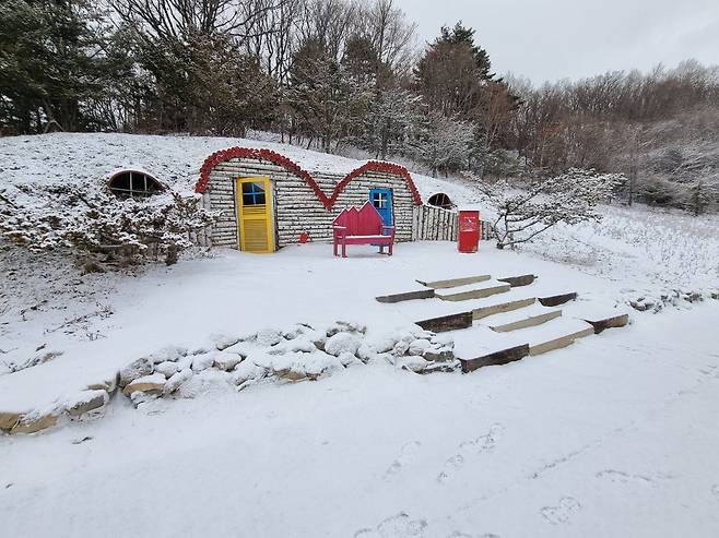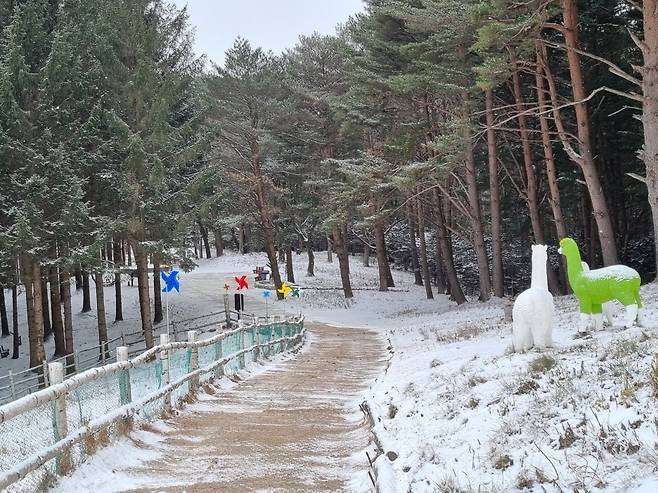 애니포레 내부에는 다양한 산책로가 이어져 있어, 체력과 일정에 맞춰 천천히 둘러볼 수 있습니다. 숲길 곳곳에는 포토 스폿이 자연스럽게 배치되어 있고, 설경 속에서는 어떤 각도로 찍어도 과하지 않은 사진이 나옵니다.