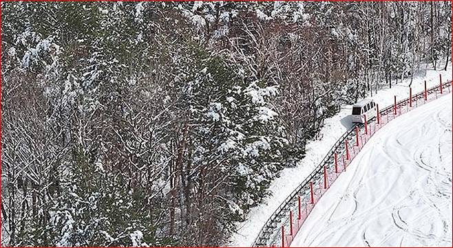 모노레일 이용:발왕산 모노레일을 타고 약 10분 정도 이동하면 됩니다. 겨울에는 눈 덮인 스키장과 설원을 내려다보며 이동할 수 있어, 이 자체가 하나의 여행 코스가 됩니다. 무엇보다 눈길 걱정 없이 안전하게 이동할 수 있어 겨울에는 가장 추천되는 방법입니다.