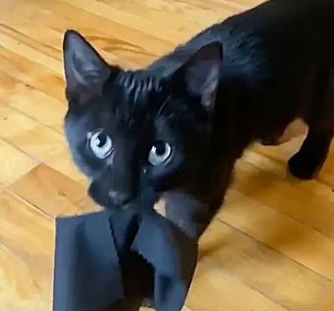 보통 고양이는 천 조각이나 장난감들을 입에 물고와서 선물이라고 내려놓는다고 하는데요. 다른 고양이들은 안 그러는데 유독 녀석만 그런다는 것.