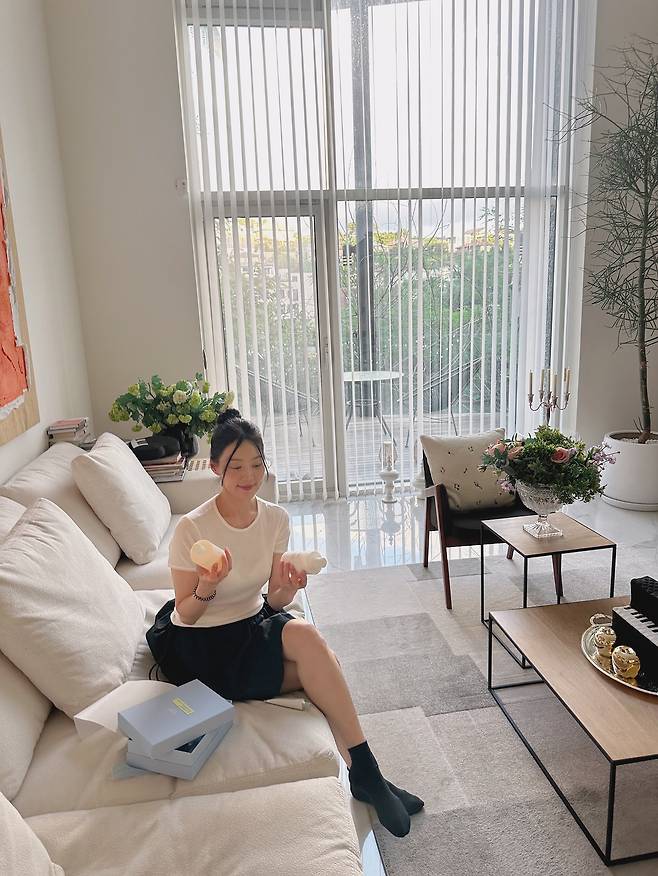 한지혜의 집 안 거실 풍경은 햇살과 함께 차분한 분위기를 담고 있었어요.
