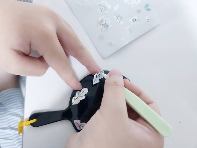 오늘 소개해드릴 놀이는 우리나라 전통공예 나전칠기 거울 꾸미기 놀이랍니다~