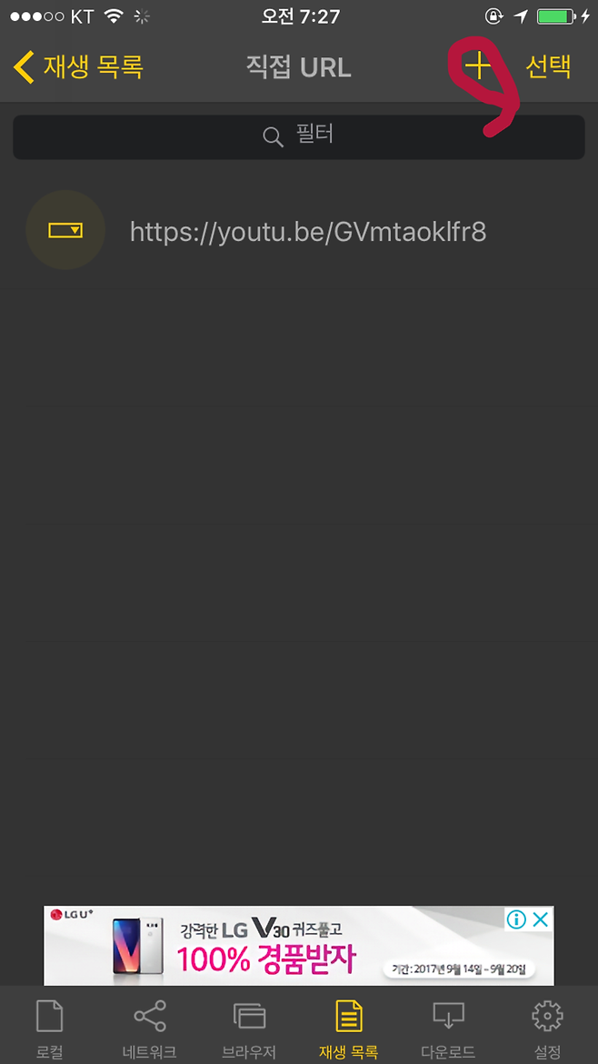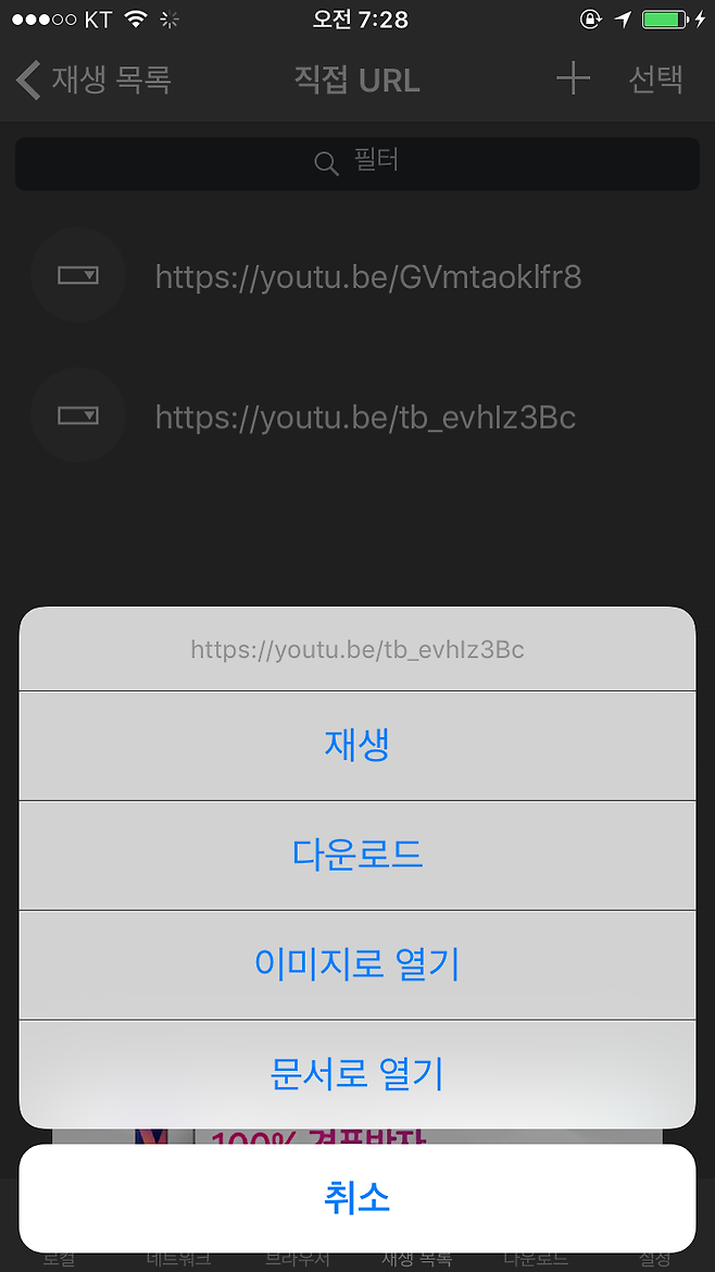 2) 앱으로 들어가 재생목록 - 우측 상단의 플러스 눌러서 주소 붙여넣고 다운