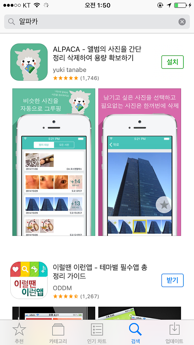 사진청소기 어플 지금은 유료로 바껴서 알파카를 깔아봤음