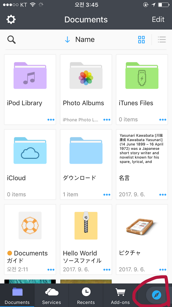 3) 앱으로 들어가 오른쪽 하단의 나침반 모양을 누른후 복사한 주소를 붙여넣은후 완료를 누른다