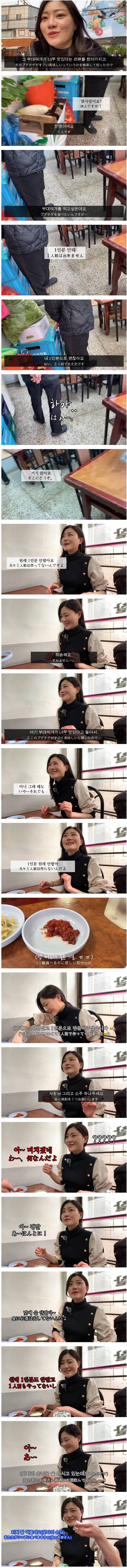 일본 여성이 한국에서 혼자 부대찌개 먹으러 갔다가 들은 말