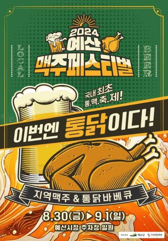 올해로 2회를 맞이하는 예산 맥주페스티벌입니다. 지난해 축제 기간 무려 24만 명이 방문한 예산 맥주 페스티벌은 올해 축제 공간을 3배로 확대하고 특별 메뉴인 통닭을 대표 메뉴로 내세워서 SNS상에서 벌써부터 입소문을 타고 있는 맥주 축제입니다.