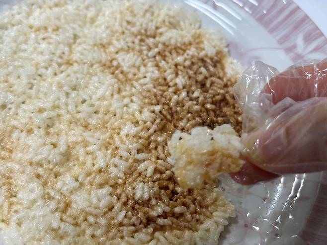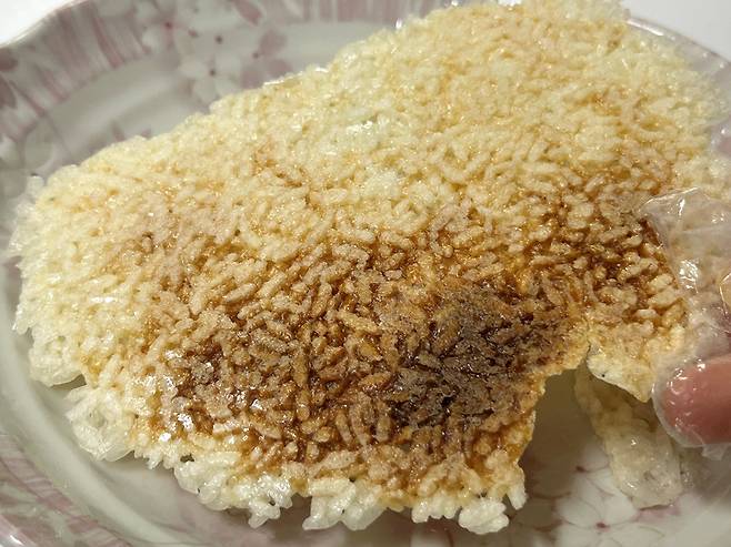 식은 밥으로 누룽지를 만들어도 맛있게 즐길 수 있습니다. 평평한 접시 위에 밥을 얇고 평평하게 깔아 주세요.